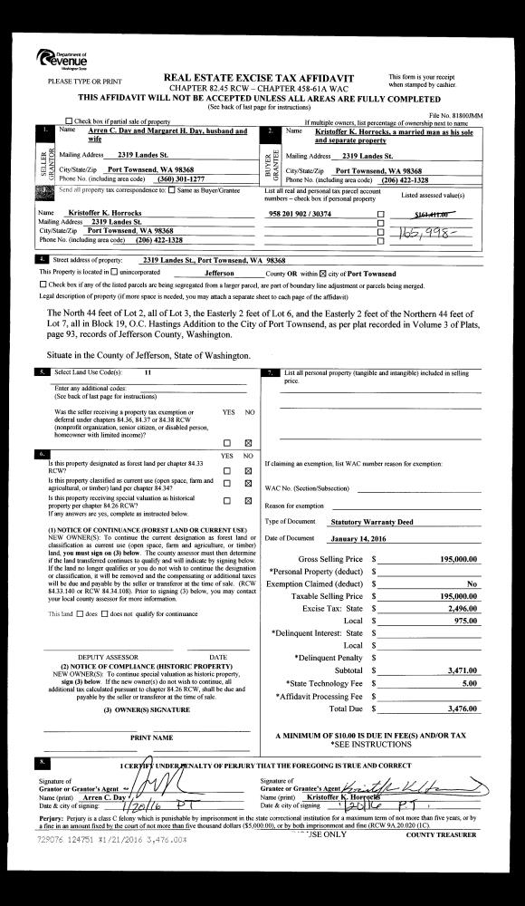 | Mailing Address: | 47 SEAWAY PL PORT LUDLOW, WA 98365-8751 | % Ownership: | 100.0000000000% |