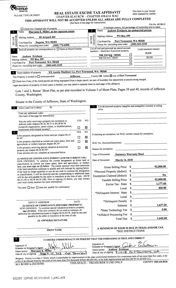| 2 | 03/04/2019 | SWD | Statutory Warranty Deed | RJJ INVESTMENS LLC | THOMAS E & LINDA B BRITTON | | | $439,000.00 | 131901 | |