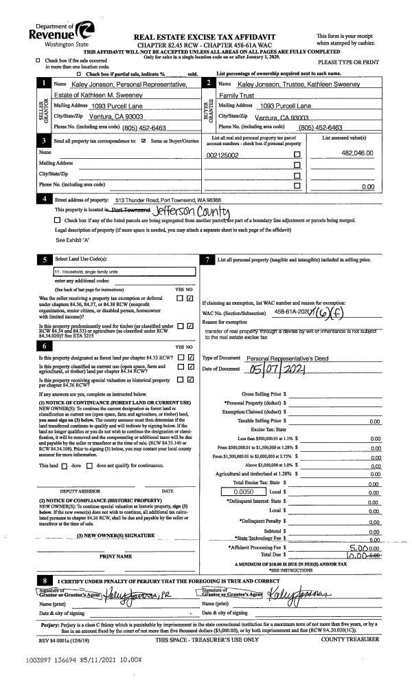 | Mailing Address: | 3003 HOWARD ST PORT TOWNSEND, WA 98368-6817 | % Ownership: | 100.0000000000% |