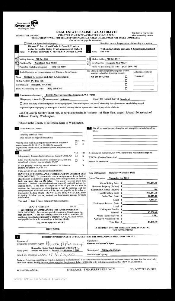 | Mailing Address: | 1284 43RD ST PORT TOWNSEND, WA 98368-1525 | % Ownership: | 100.0000000000% |