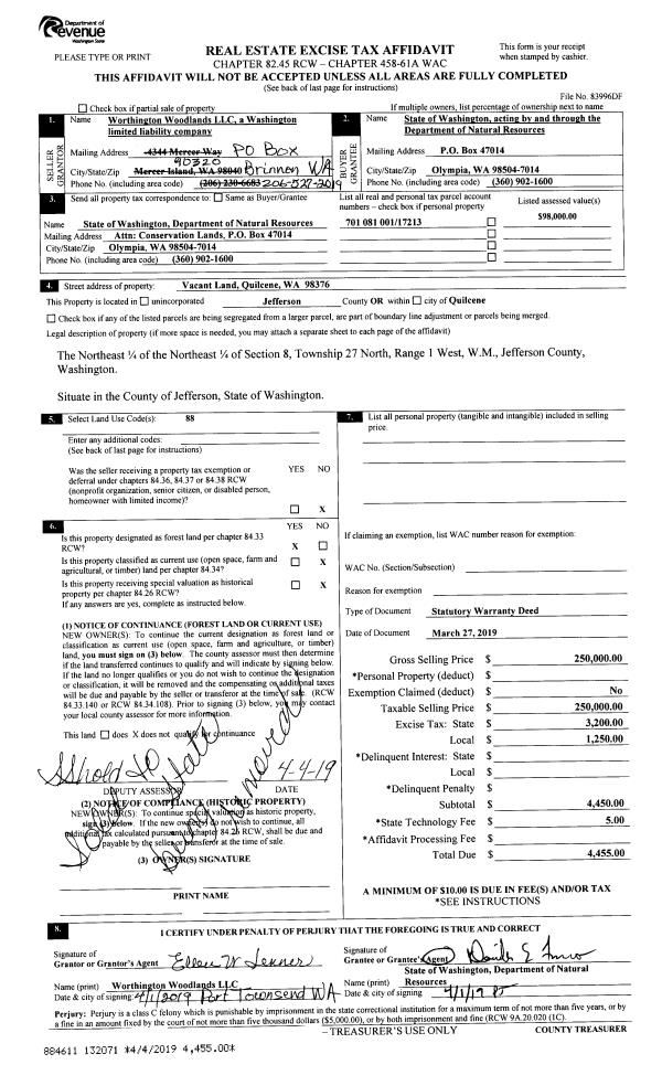 | 3 | 06/19/2019 | SWD | Statutory Warranty Deed | DAVID L PETERSON | CHRIS DICKSON | | | $80,000.00 | 132581 | |