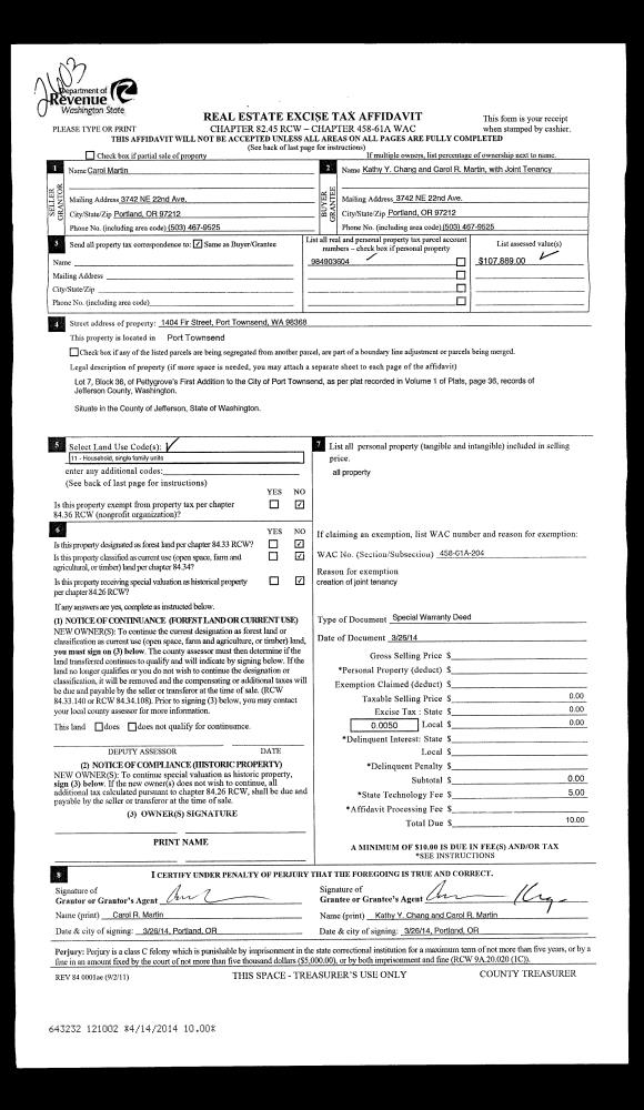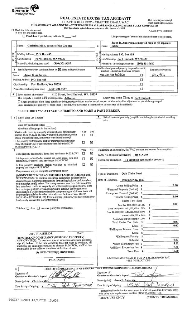 | 4 | 02/02/1995 | SWD | Statutory Warranty Deed | PORT TOWNSEND LUMBER COMP | SCHULTZ, DENNIS A | 0 | 0 | $6,000.00 | 76283 | 0 |