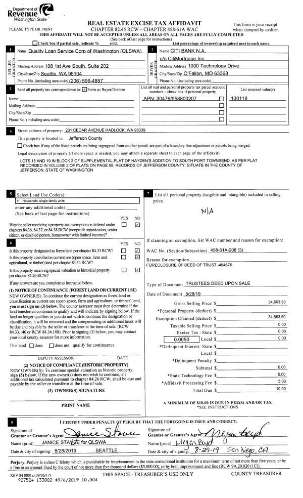 | Mailing Address: | 53 COOK ST PORT TOWNSEND, WA 98368-9215 | % Ownership: | 100.0000000000% |