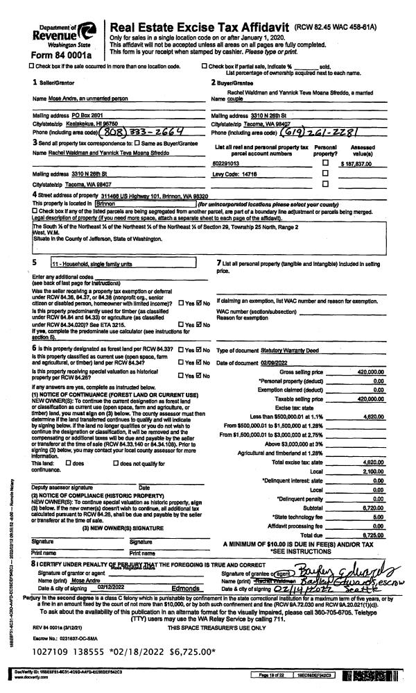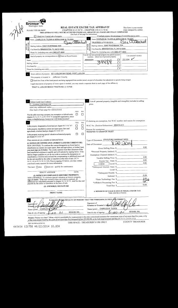 | Mailing Address: | 534 COOK AVE EXT PORT TOWNSEND, WA 98368-9271 | % Ownership: | 100.0000000000% |
