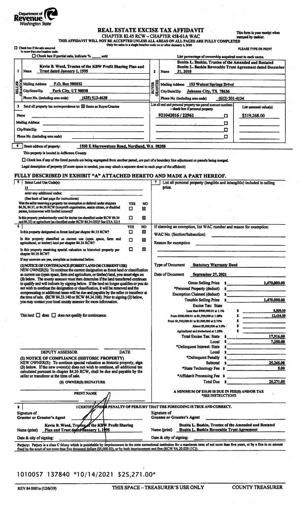 | Mailing Address: | 2025 QUEEN ANNE PL PORT TOWNSEND, WA 98368-7305 | % Ownership: | 100.0000000000% |