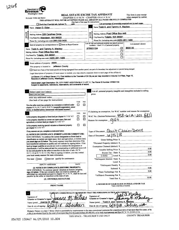 | Mailing Address: | ASHLEY N OWEN 124 NESS CORNER RD PORT HADLOCK, WA 98339-9409 | % Ownership: | 100.0000000000% |