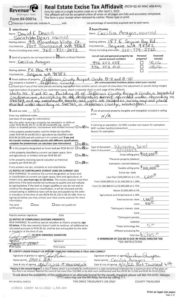 | 5 | 04/14/2016 | SWD | Statutory Warranty Deed | NANCY PAYSON | MARTIN HUNTER FAMILY TRUST | | | $131,000.00 | 125214 | |