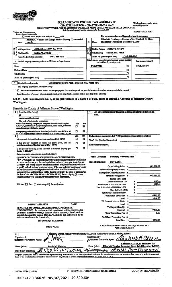 | Mailing Address: | DEBRA L FOUNTAIN 2064 VICTORIA AVE PORT TOWNSEND, WA 98368-7327 | % Ownership: | 100.0000000000% |