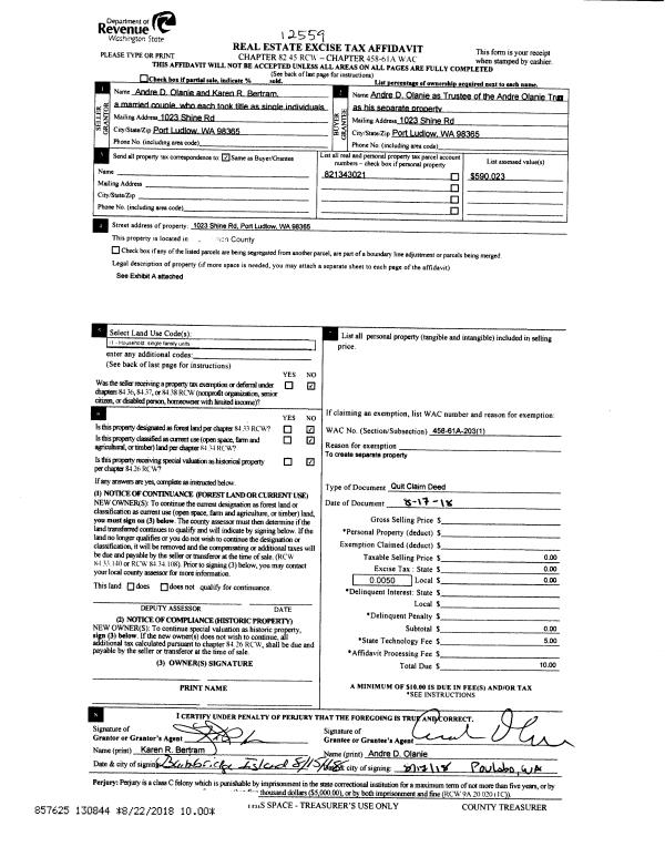 | Mailing Address: | MARK H MILLER TRUSTEE JANE D MILLER TRUSTEE 100 BELVEDERE DR PORT TOWNSEND, WA 98368-9514 | % Ownership: | 100.0000000000% |