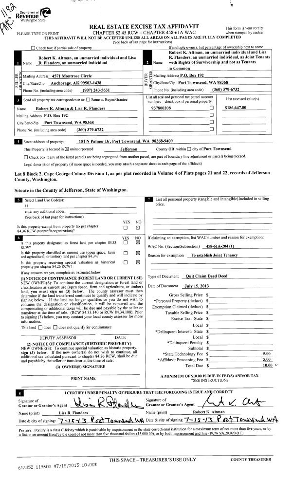 | Mailing Address: | KIANNA SHIPP 2067 VICTORIA AVE PORT TOWNSEND, WA 98368-7319 | % Ownership: | 100.0000000000% |