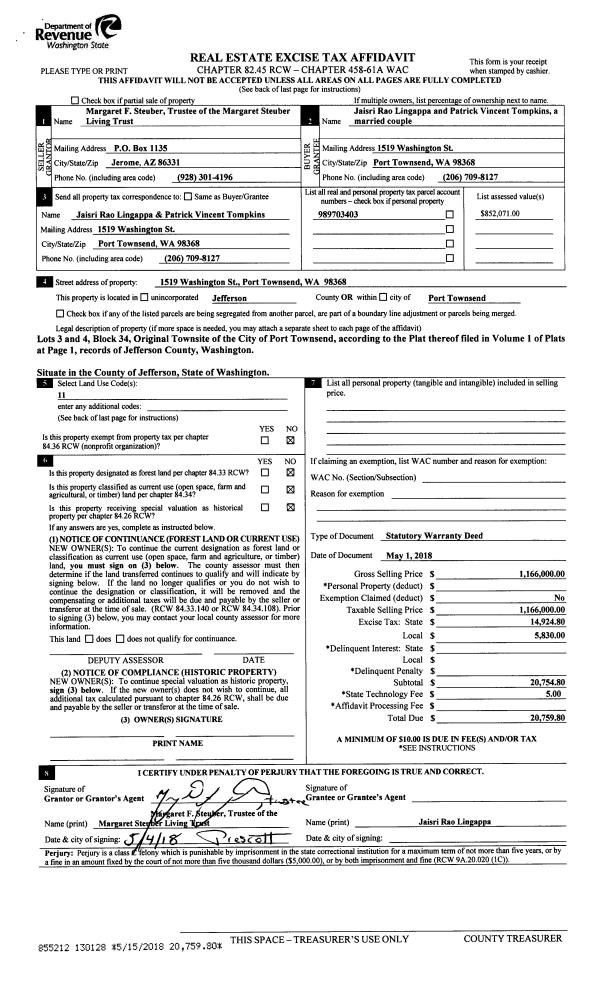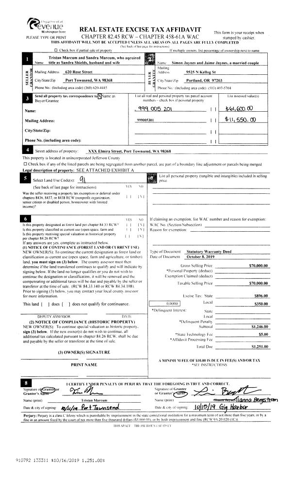 | Mailing Address: | 706 50TH ST PORT TOWNSEND, WA 99836-2009 | % Ownership: | 100.0000000000% |