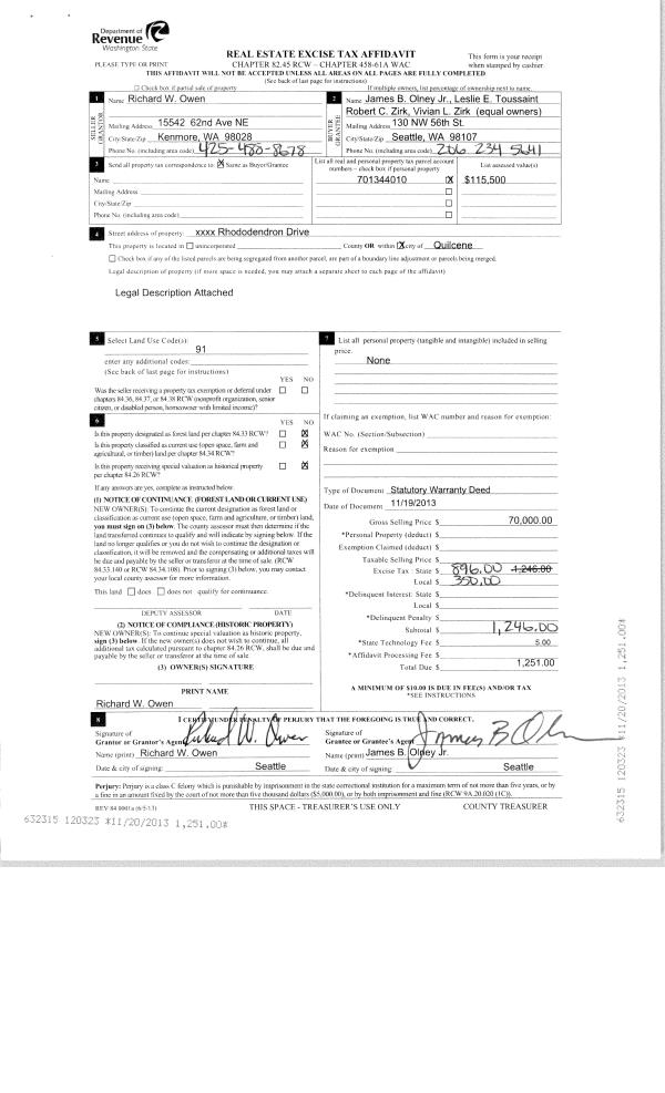 | 3 | 12/03/2013 | SWD | Statutory Warranty Deed | JEANETTE L DOYLE | RANDAL & JANICE RODGERS | | | $85,400.00 | 120428 | |