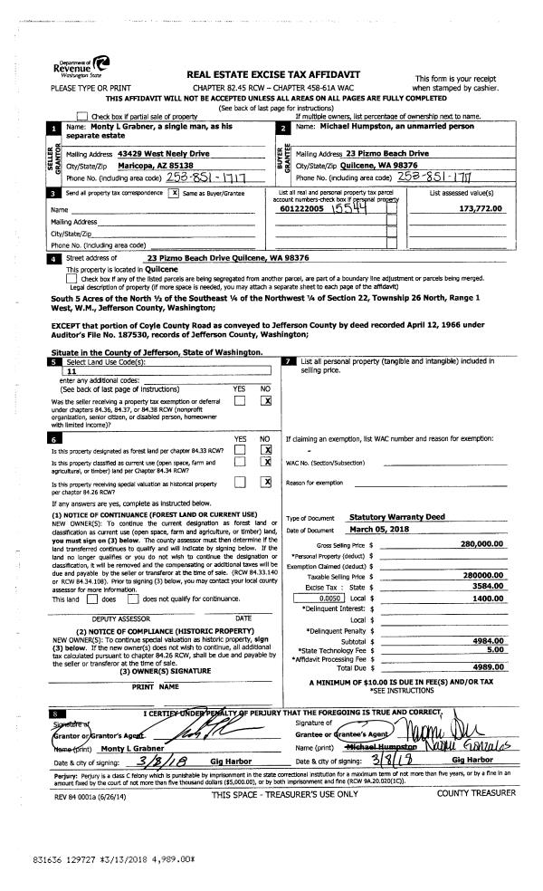| 1 | 04/19/1995 | SWD | Statutory Warranty Deed | MARTIN, CAROLYN E/TRUST | HANSEN, LLOYD & EDITH/TRUST | 0 | 0 | $90,000.00 | 76724 | 0 |