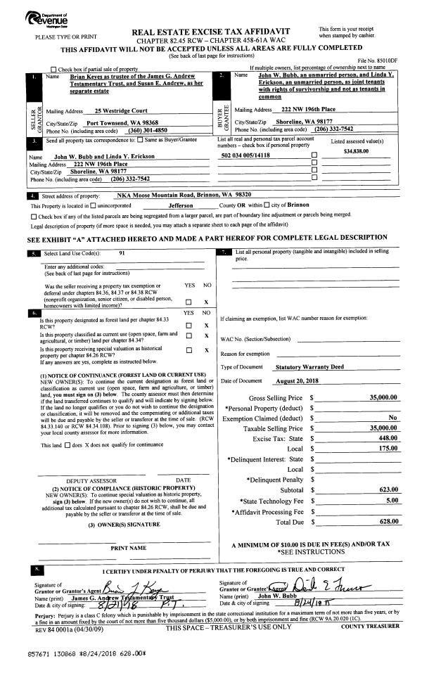 | Mailing Address: | 2119 RENEE PL PORT TOWNSEND, WA 98368-7308 | % Ownership: | 100.0000000000% |