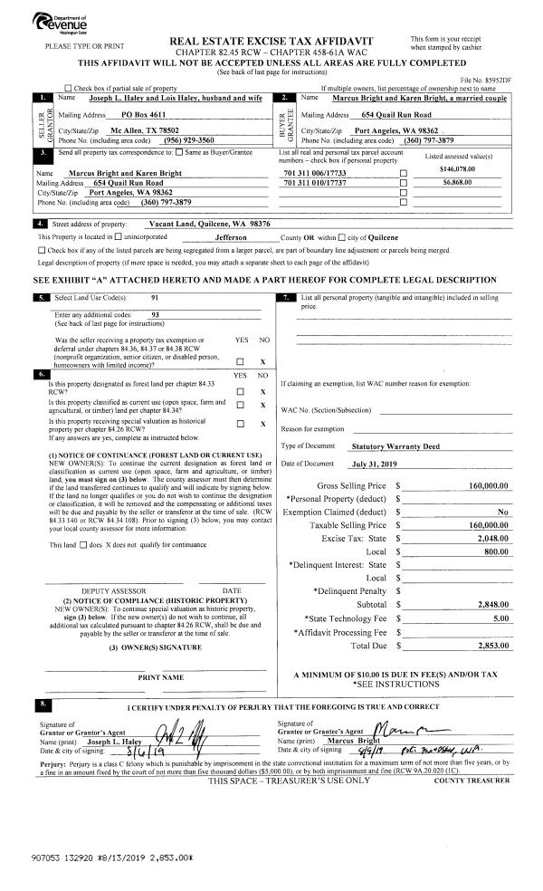 | 2 | 07/03/2019 | SWD | Statutory Warranty Deed | PATRICIA A LOPACINSKI | COLTON WORLEY | | | $85,000.00 | 132686 | |
