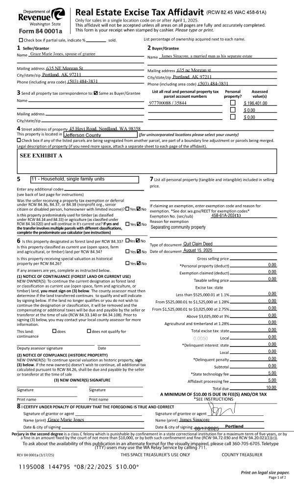 | Mailing Address: | 832 ROOSEVELT ST PORT TOWNSEND, WA 98368 | % Ownership: | 100.0000000000% |