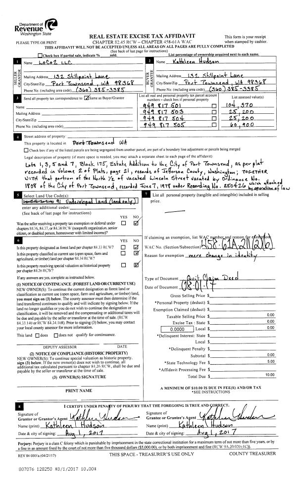 | Mailing Address: | 85 ALDRICH RD PORT TOWNSEND, WA 98368-9613 | % Ownership: | 100.0000000000% |