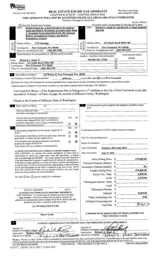 | Mailing Address: | 824 WATER STREET PORT TOWNSEND, WA 98368 | % Ownership: | 100.0000000000% |