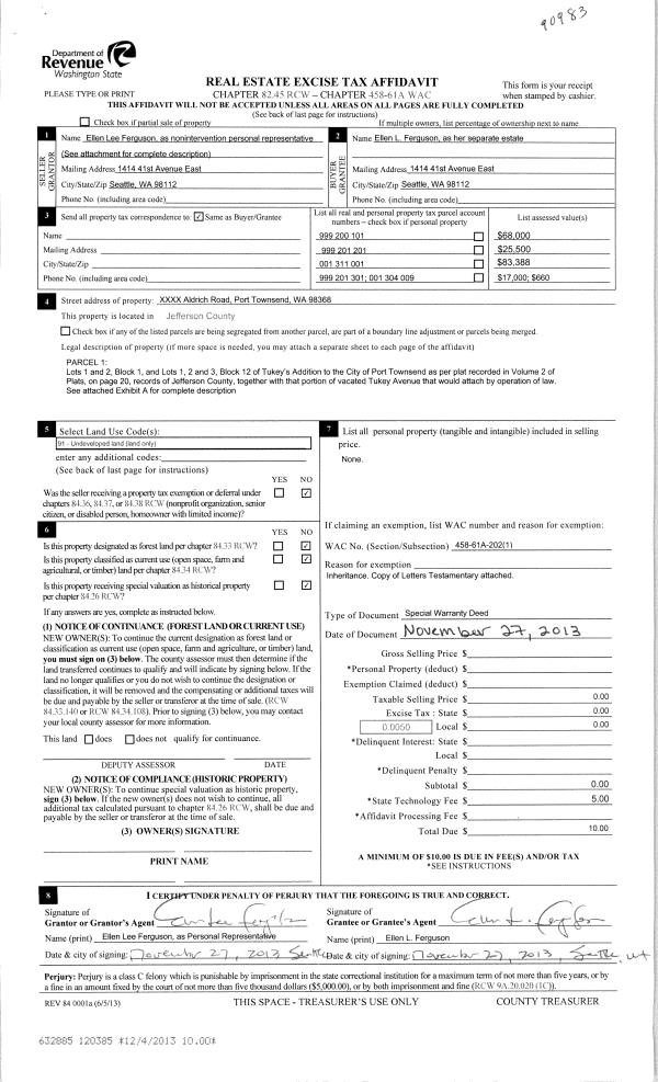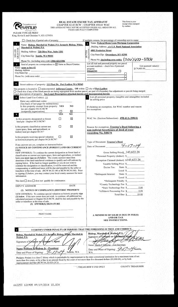 | Mailing Address: | 2589 WILSON ST PORT TOWNSEND, WA 98368-5125 | % Ownership: | 100.0000000000% |