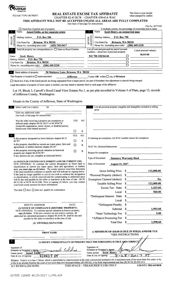 | 3 | 05/30/2018 | SWD | Statutory Warranty Deed | GAIL M WOOD | IMRI LAEL H MC KNIGHT | | | $235,000.00 | 130335 | |