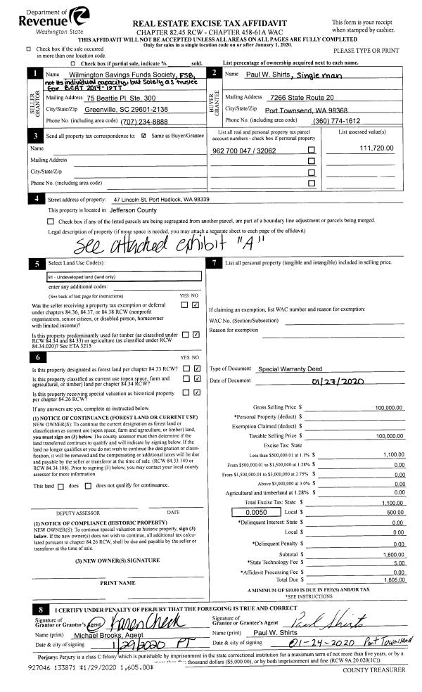 | 1 | 05/11/2021 | SWD | Statutory Warranty Deed | DON L BRICKEY & BARBARA L BULLEN | SCOTT R BRODERSON | | | $300,000.00 | 136728 | |