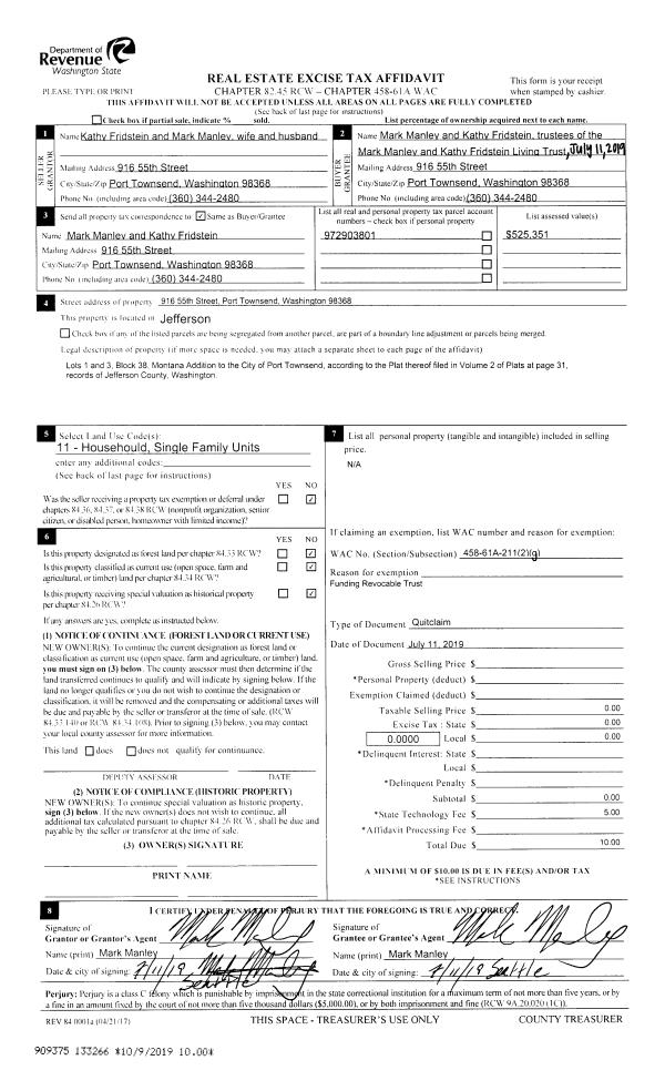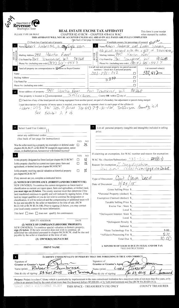 | 4 | 10/24/2003 | SWD | Statutory Warranty Deed | PORT LUDLOW ASSOCIATES LL | HUNTER JR, MURRAY J, MAGANJA, | 0 | 0 | $610,000.00 | 98664 | 0 |