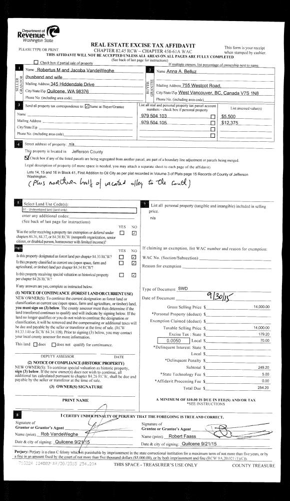 | Mailing Address: | 372 WOODRIDGE DR PORT LUDLOW, WA 98365-8743 | % Ownership: | 100.0000000000% |