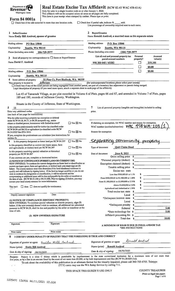 | 1 | 04/01/2022 | QCD | Quit Claim Deed | PEGGY PEDERSON TRUST | | | | | 138815 | |