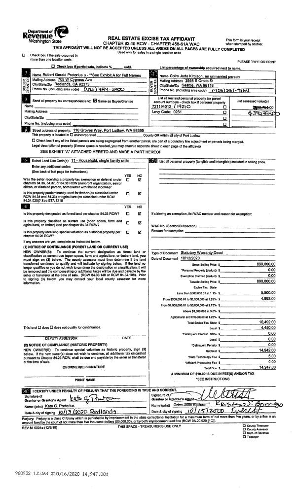 | Mailing Address: | 764 RAVENSWOOD DR QUILCENE, WA 98376 | % Ownership: | 100.0000000000% |