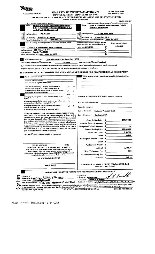 | Mailing Address: | 1673 WOODLAND DR PORT TOWNSEND, WA 98368-2594 | % Ownership: | 100.0000000000% |